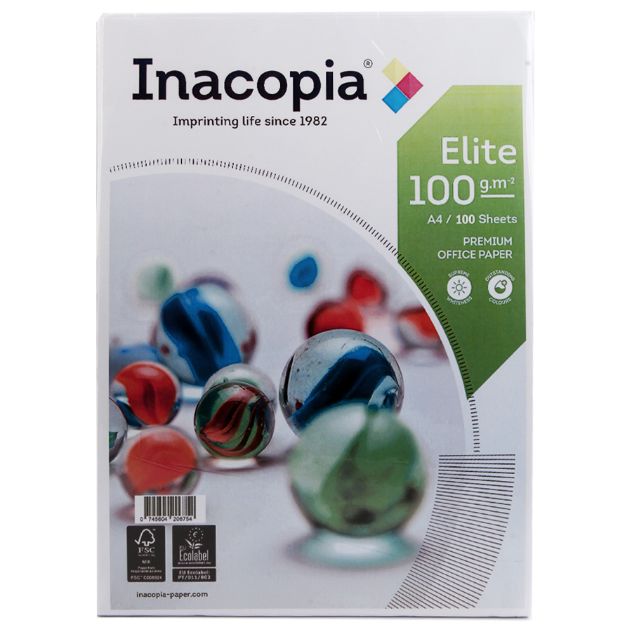 Inacopia Elite 100张白色复印纸包采用高质量材料,A4尺寸,适合摄影用途,因其高质量而受到青睐,重量为100克,具有很高的耐用性。